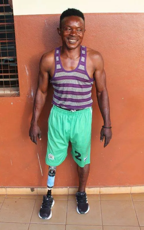 Rialzarsi dopo tanto dolore non è stato facile, ma ad oggi può contare sul supporto di sua moglie e dei suoi tre figli. Lavora come decoratore e imbianchino e oggi può finalmente lavorare con più agilità e facilità grazie alla sua prima protesi ricevuta grazie alla formazione di SwissABILITY a Freetown, a febbraio 2024.