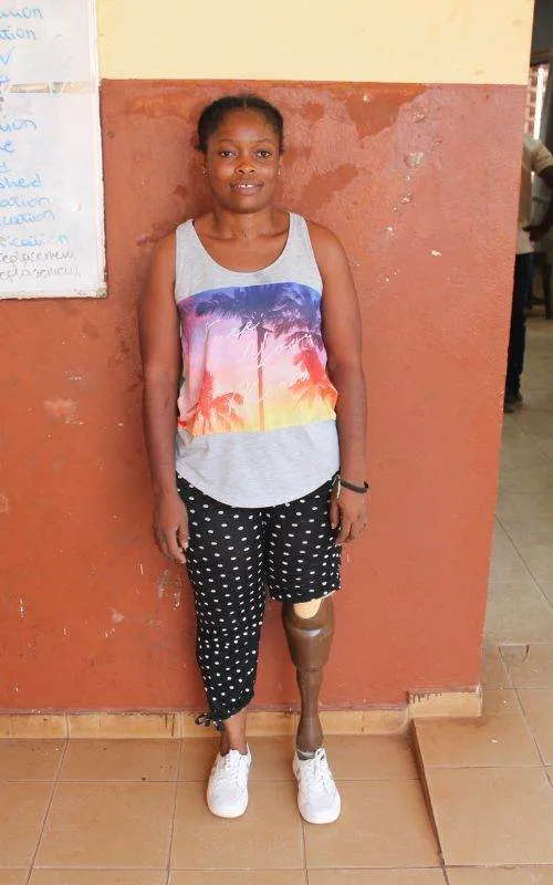 Comfort ha ricevuto una protesi nella formazione di SwissABILITY a Freetown nel maggio 2023.