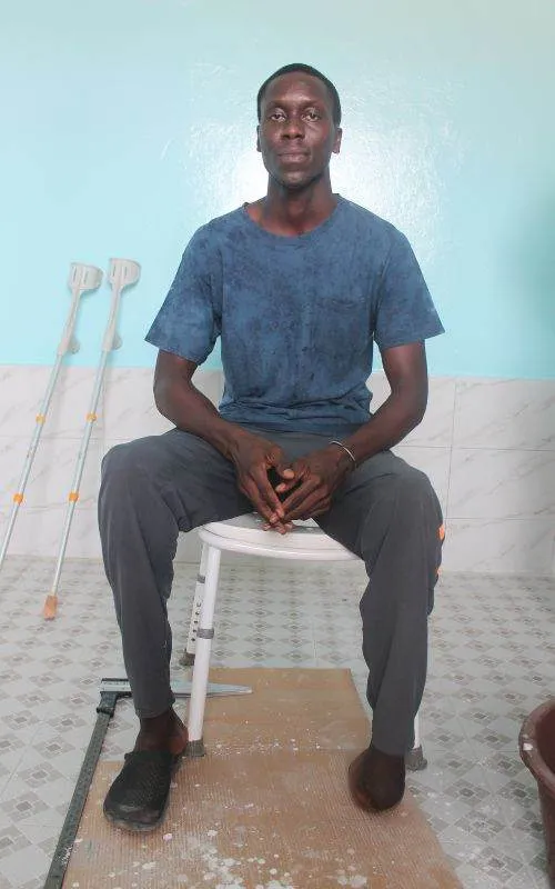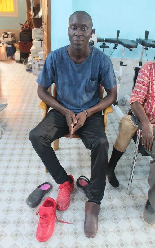 Ebrima ha 20 anni e si occupa di assistenza personale ai pazienti amputati nel centro ortopedico di Banjul, in Gambia. È molto bravo nel suo lavoro, in quanto amputato comprende meglio i bisogni dei suoi assistiti.