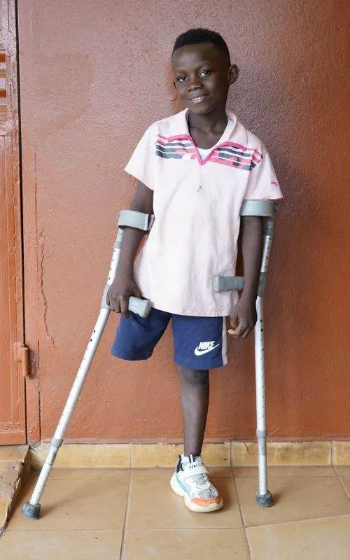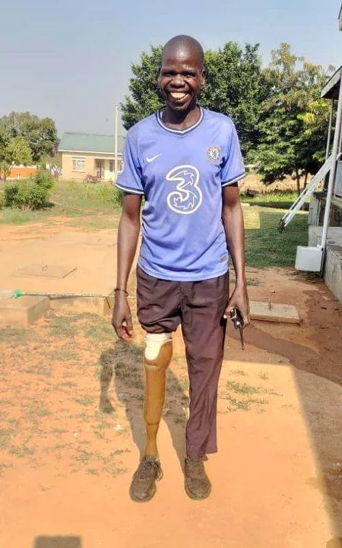 Per stare vicino alla famiglia, dal Congo RDC è riuscito a spostarsi in Uganda al campo rifugiati di Bidibidi, dove lo aspettavano sua moglie e i suoi sei figli. Joseph ha ricevuto una protesi Monolimb durante la missione di SwissABILITY in Uganda nel giugno del 2024.