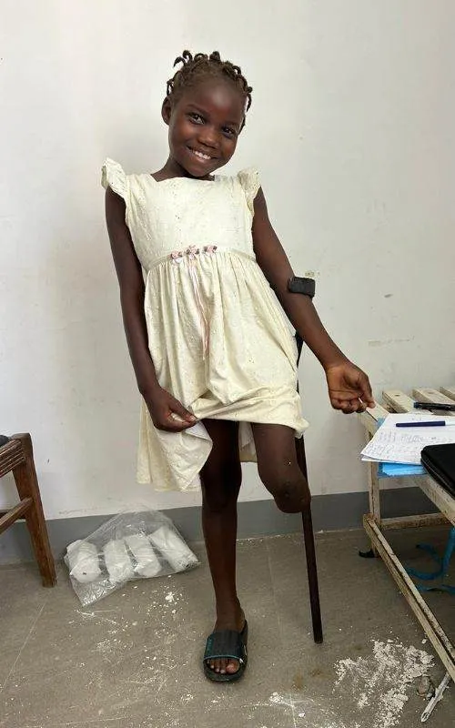 Nonostante una vita colma di drammi, Ana Maria ha il sorriso stampato sul volto e non smette un secondo di scherzare. La protesi che ha indossato finora le procurava però moltissimo dolore: la sua speranza è di iniziare una vita diversa, senza dolori ma solo risate, grazie alla nuova protesi che ha ricevuto da SwissABILITY nel giugno 2023 a Nampula.