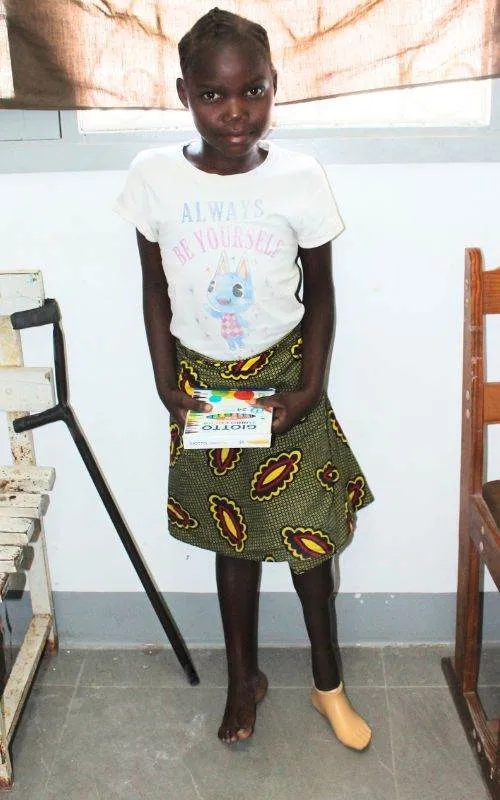 Beatrice vive in Sierra Leone ed è stata vittima di un incidente d’auto quando aveva solo tre anni: stava attraversando la strada quando un’auto le ha schiacciato il piede. In ospedale hanno deciso di amputarle la gamba sotto al ginocchio e dopo un anno indossava già la sua prima protesi.