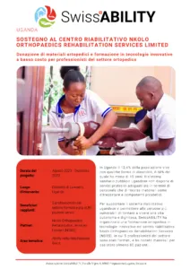 Per questo motivo, SwissABILITY vuole sostenere il sistema riabilitativo ugandese per permettere alle persone più vulnerabili di tornare a vivere una vita autonoma e dignitosa. SwissABILITY sostiene il partner locale Nkolo Orthopaedics Rehabilitation Services (NORS), affinché sempre più persone con disabilità possano ricevere servizi riabilitativi adeguati. Il NORS è un centro riabilitativo d’eccellenza che offre una gamma di servizi riabilitativi d’eccellenza a prezzi agevolati a più di 600 pazienti all’anno (suddivisi fra pazienti del centro ortopedico, della fisioterapia e dell’ergoterapia) e che produce più di 300 protesi e ortesi ogni anno.