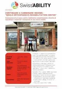 Il progetto di SwissABILITY, in collaborazione con il partner locale Nkolo Orthopaedics Rehabilitation Center (NORC), ha come obiettivo quello di offrire alle persone con disabilità di Luweero e delle zone circostanti un servizio completo attraverso la costruzione di un innovativo centro riabilitativo, dotato di macchinari e materiali per la produzione di protesi e ortesi, che comprenda: officina ortopedica, unità di fisioterapia, unità di ergoterapia e logoterapia. Inoltre, è prevista la costruzione di alloggi destinati sia al personale del centro che proviene da zone distanti, sia a tutti gli utenti che arrivano da aree più remote e necessitano di cure prolungate su più giorni.